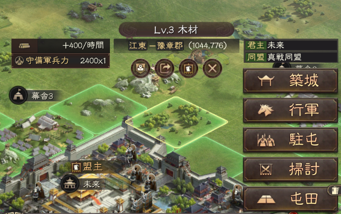 占領した土地からは、土地の種類に応じた資源を入手できます。そして、マップは三国志時代の土地を再現しており、地形を活かした城づくりや、その他のプレイヤーとの戦闘を楽しむことができます